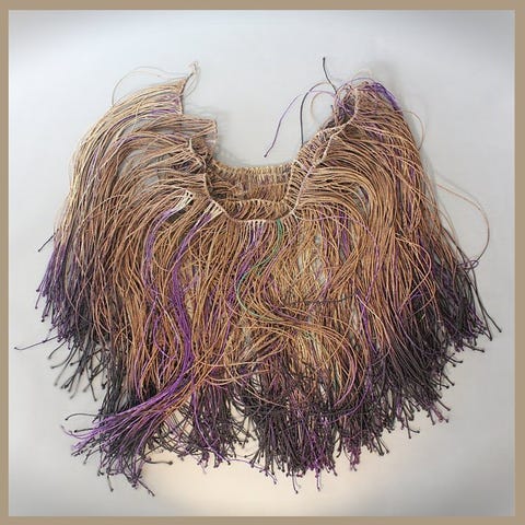 Patchwork, Panamaindiansk mola fra nogle øer, der tilhører Panama. Har været udstillet på ‘Å-udstillingen i 1971’. Del af gammel indiansk kjolebeklædning, indrammede ( 44 x 54 cm ). Geometriske, håndsyede ‘bryststykker’, detalje fra kvindebeklædning ( ex brudekjoler ). Fint detaljeret, syet med små fine sting i stoffer med stærke farver. Den mørke 41 x 39,5 cm, den lysere 43 x 33 cm. Prisen er pr stk. ( samlet 700 kr ).