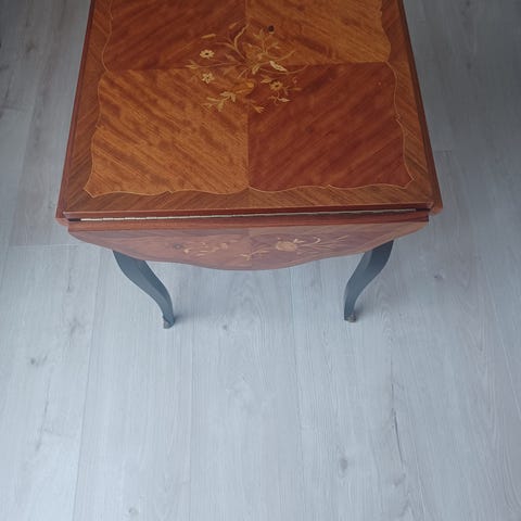 Klapbord, Sofabord hvor alt er lavet i massiv mahogni, bordet er lakeret og har to klapper.