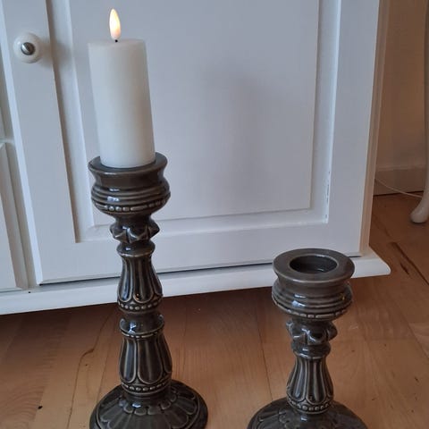 Lysestage, 2 fine gulv lysestager. 120 cm høje uden lys. Lys medfølger. Har 2 stk. prisen er 300kr pr stk eller 500kr samlet.