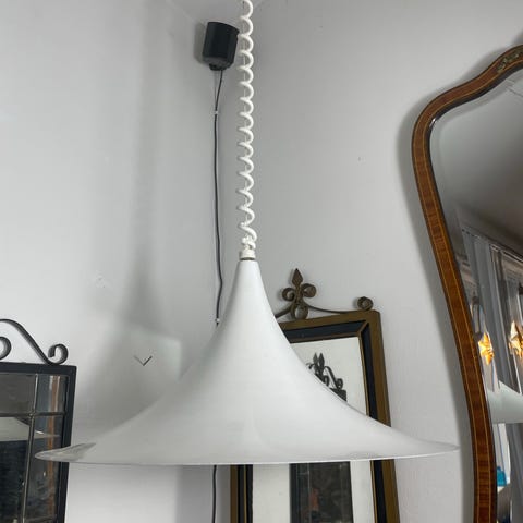 Pendel, Fog & Mørup, 2 stk meget pæne pendel “trompetlamper”. Professionelt omlakeret både udvendig og udvendig. Stand som ny - ingen buler eller ridser.