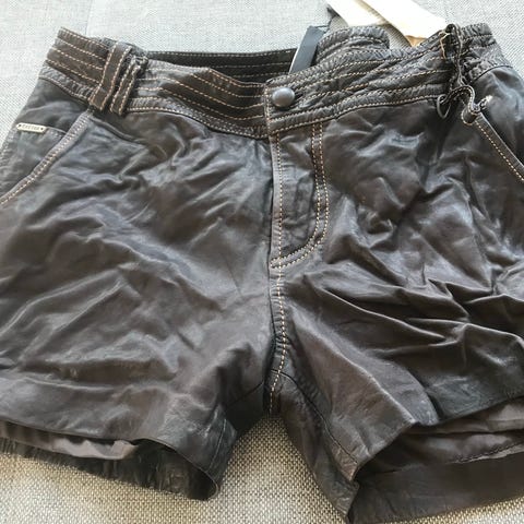 Shorts, Camanchi, str. findes i flere str., Sort, Ægte læder, Næsten som ny, Lækre vintage shorts i meget blød læder. Made in England. Fantastisk kvalitet. Størrelse L. Se mål. Kan sendes med Dao for +43 kr.