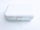 Smart mini kontorsæt i hvid plasticæske med saks, lineal, lim, målebånd, tape, clipsemaskine, clips, vidskelæder, m.m.
