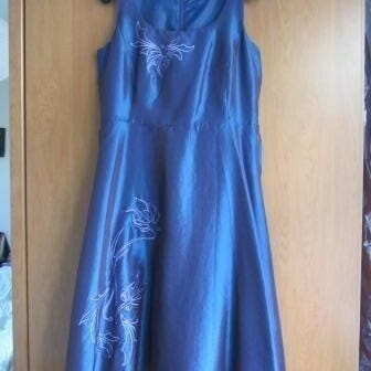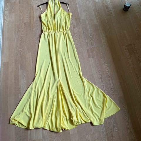 Festkjole, Elinette, str. L, Lyseblå, Polyester, Næsten som ny, Lang blå kjole med passende jakke