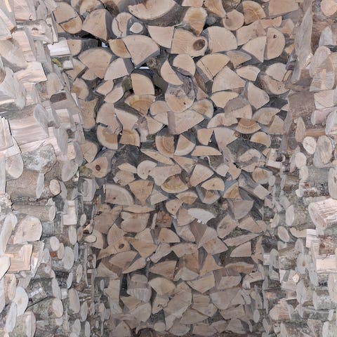 6 7 rummeter Blandet løvtræ. Ask, bøg, eg, ahorn. Er fældet og savet i 1 m 30 cm stykker 350kr pr m.