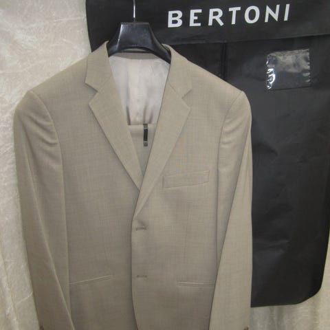Jakkesæt, Bertoni, str. S, Blå med tynde hvide striber, Næsten som ny, Virkelig flot Jakkesæt fra Bertoni inkl. skjorte. Det er slimfit og har en rigtig god pasform.