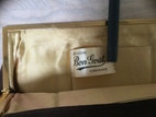 Vintage - Flot og velholdt brun ruskindstaske med gyldent for og 2 indvendige mindre rum til spejl o.lign.