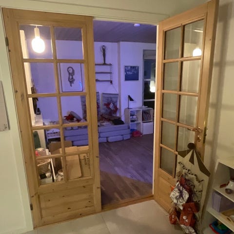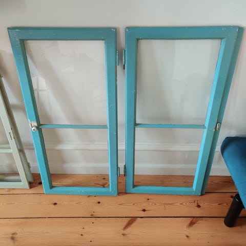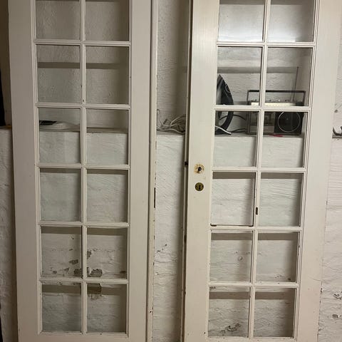 Andet, træ, b: 47 h: 129, 2 antikke glaslåger til vitrineskab. Købt i Genbyg for ialt 1500