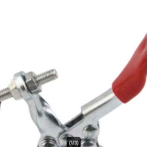 Fileklemme .i metal med skrue. Tangen har en sort finish og er designet til at gribe og holde genstande fast. Den kan anvendes til forskellige håndværks- og reparationsopgaver.
