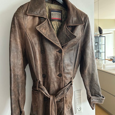 Læderfrakke, str. 40, Læder, Rød, Vintage læderfrakke knap mangler