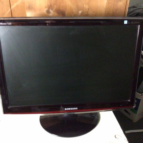 Samsung 22" skærm med standard tilslutningsmuligheder. Skærmen har en sort finish og er velegnet til almindelig brug på kontor eller hjemme.