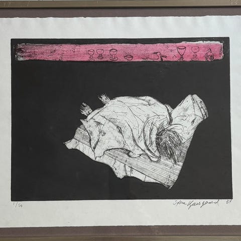 Signeret original grafik, Søren Kjærsgaard, b: 36 h: 46, Skøn zinkografi af Søren Kjærsgaard. Signeret og dateret 1979. Uindrammet. Pæn stand.