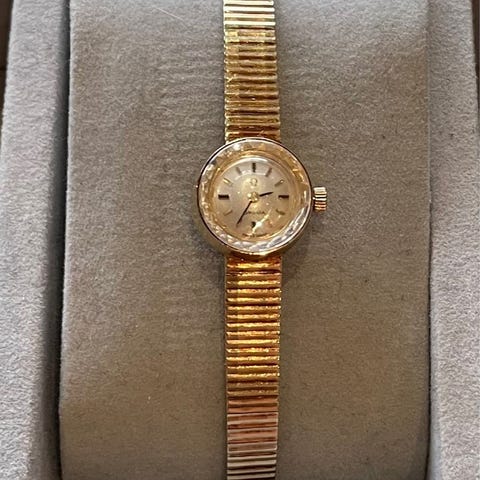Uret fremstår med mindre brugsspor som små ridser. Uret trænger til polering og evt ny rem.