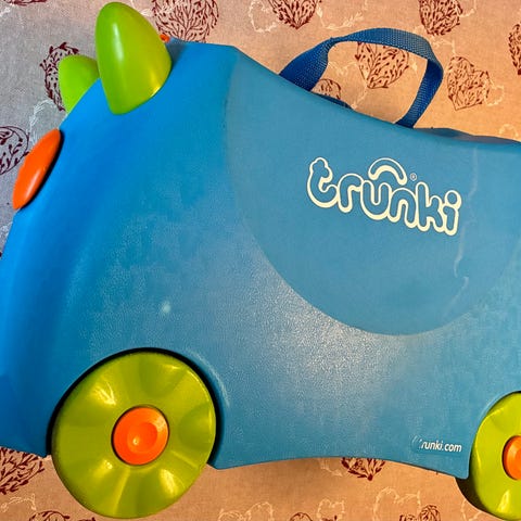 –En rummelig kuffert, som børn kan sidde på, blive trukket på eller selv trække.