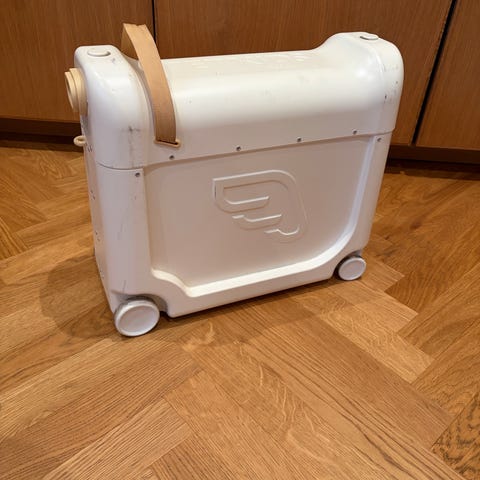 JetKids™ by Stokke® BedBox™ , er verdens eneste ride-on kuffert til børn, som kan bruges som en flyseng eller benstøtte. Det giver dit barn mulighed for at hvile behageligt eller sove på lange eller korte flyture. Når den er pakket, kan du lade den lille ride på den (eller trække den) gennem lufthavnsterminalen uden stress. Når du må tage sikkerhedsselen af om bord på flyet, kan JetKids™ by Stokke® BedBox™ i 5 enkle trin omdannes fra en kuffert til en seng. Ride-on kufferten er til børn fra 3-7 år, og sengefunktionen er bedst egnet til børn over 2 år. Officielt godkendt af mange flyselskaber.
