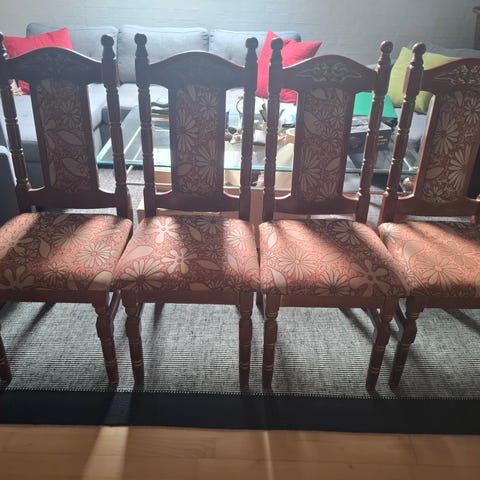 Spisebordsstol, Grøn velour, Fransk, To stk, Retro stole med fjeder bund. Gamle og i vintage stil. Samlet