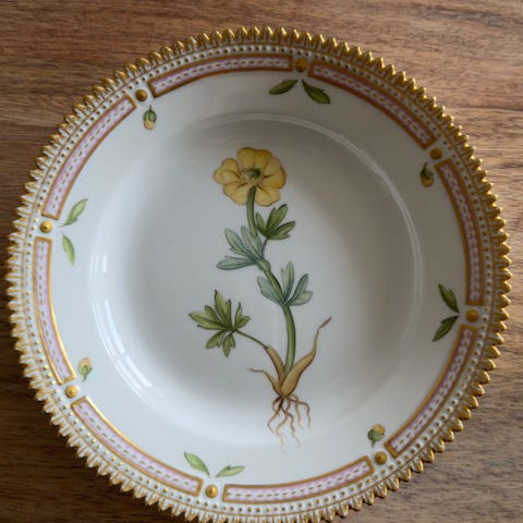 Royal Copenhagen, Flora Danica tallerken med gennembrudt guldkant.