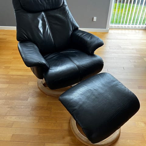 Drejestol, læder, Næsten ny drejestol med skammel - fejlkøbt