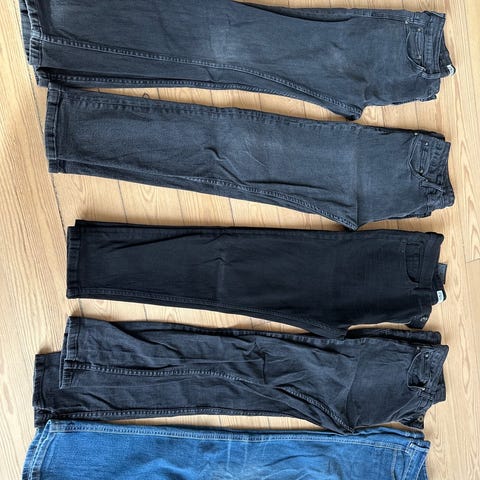 Jeans, Jeans, Revolutions, Justjunkies, h&m, , str. 176, Str. M til børn. 5 bukser.