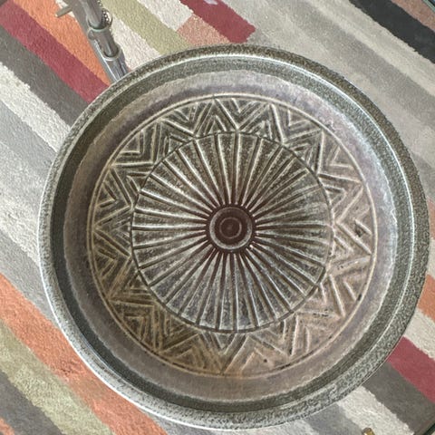 Diameter rundt fad 29 cm, det andet måler 35 x 28 cm.