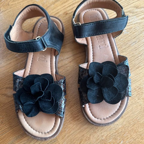 Bisgaard sandalerne er i en lukket model. Sandalerne har en praktisk velcrorem over vristen, og omkring åbningen er der en god polstring. På indersiden er de beklædt med skind og i bunden er der en blød, ergonomisk lædersål.