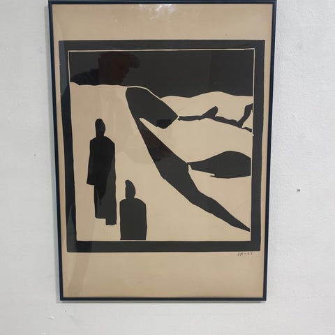 Silke tryk, Johannes Hofmeister , motiv: Landskab, b: 44 h: 36, Signeret - indrammet i sølvramme af prof.