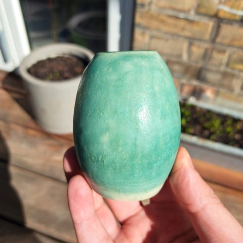 Keramik, Vase, Bente Hansen, Stor flot Bente Hansen vase lavet i år 2000 og er nr 32 ud af 100. Måler ca 24 cm i højden. Den er uglaseret udvendig og indvendig er den glaseret med en fin transparent glasur der giver et turkist udtryk.