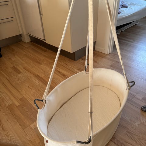 Vugge, Leander hænge vugge, Smuk leander hænge vugge med hvid himmel og madras