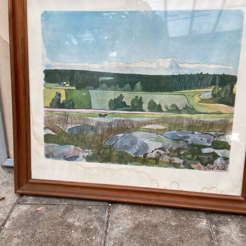 Kul, Olaf Markussen, b: 31 h: 22, Fin landskabstegning i pen på papir. Signeret. Uindrammet. Benyttet til bogværket “Jyllandsværket” 1957.