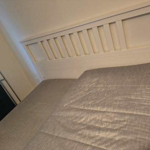Medfølger: lamelbund, sidebrædder og madras af mærket Sultan. Ikea producerer ikke længere Sultan madrasser.