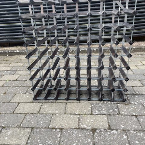 Vinreol, b: 40 d: 36 h: 125, Flot vinreol i stål med låsekasse.