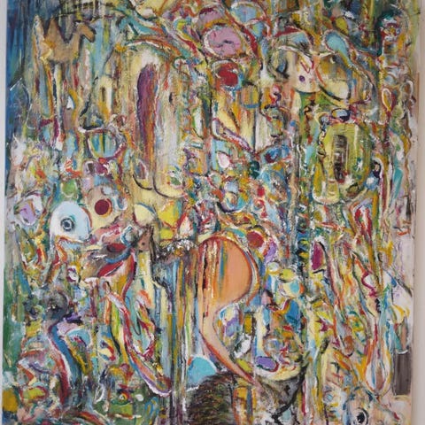 Akrylmaleri, HSE. UK.K, motiv: Abstrakt, stil: Ekspressionisme, b: 100 h: 100, Afhentes på min adresse. Kan evt sendes indland. Skønt maleri.