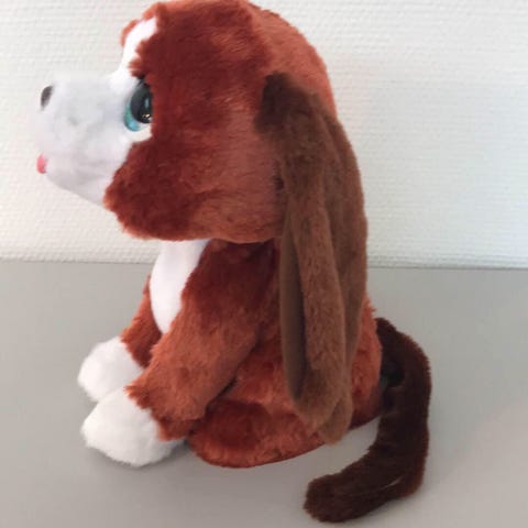 Silverlit Teksta interaktiv hund legetøj i sort, hvid og rød farve. Fremstillet af plastmateriale. Designet til børn som et elektronisk kæledyr.