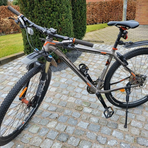 Vedligeholdt og uden skader (kun små ’naturlige’ ridser) Den kun kørt på skovstier som motion og altid stået indendørs.