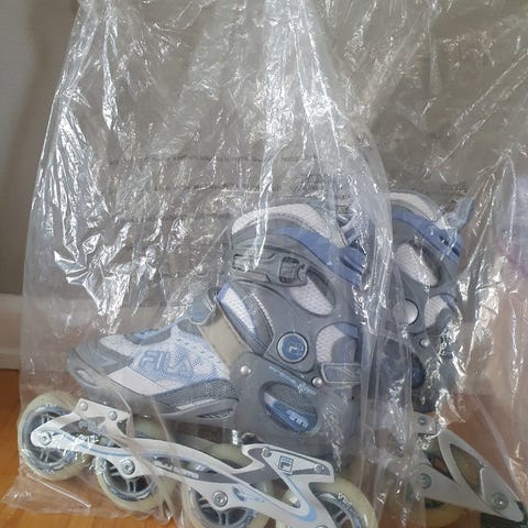 Inliners, FILA, str. 32-35, igtig god børnerulleskøjte. Kan indstilles fra størrelse 32-35, så det kan følge barnet i takt med at det vokser. Kvalitets hjullejre ABEC 3. Meget bedre end dem der sidder på rulleskøjter købt i en lejetøjsforretning. Kun lidt brugt. Albue og knæbeskyttere medfølger.