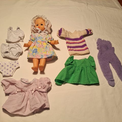 New born baby, Ca 21 cm rigtig sød fast dukke med lidt ekstra tøj
