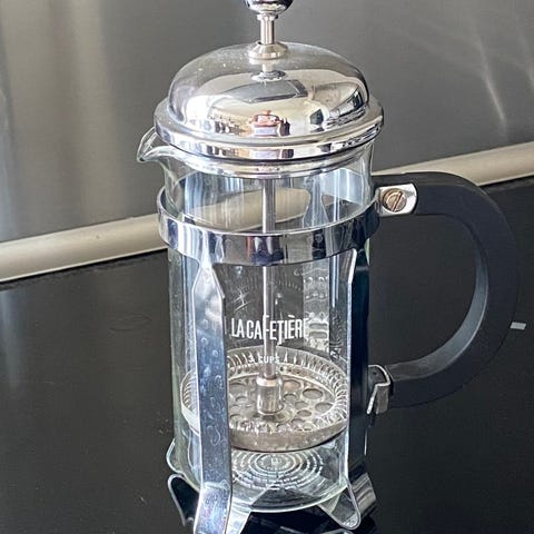 Sæt bestående af stempelkande med to tilhørende kopper af mærket La Chocolatíere.