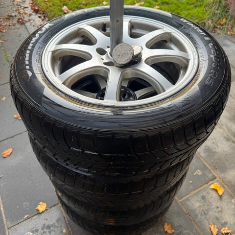 Alufælge, 16", fælge med dæk, Fælge med tilhørende vinterdæk som nok kan holde en sæson mere.