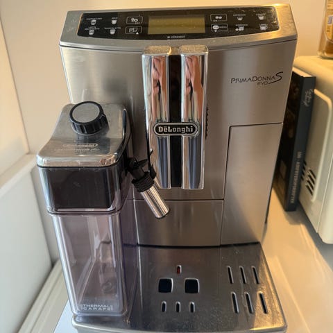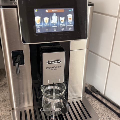 Kaffemaskine , Delonghi Primadona Class, Fuldautomatisk kaffemaskine med kværn og vandtank integreret .Laver kaffe,espresso ,caffelatte ,lattemacciato ,cappucino også varmvand for te.Garanti 6 måned.