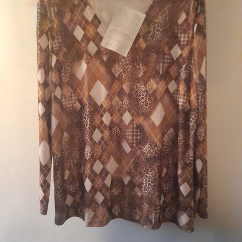 Bluse, B B, str. 54, Brun , Næsten som ny, Bluse str XL store størrelser plus pige , se mål på længde og brystvidde på billederne. Mærket B B . Som ny. Se evt mine andre annoncer