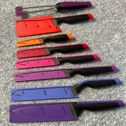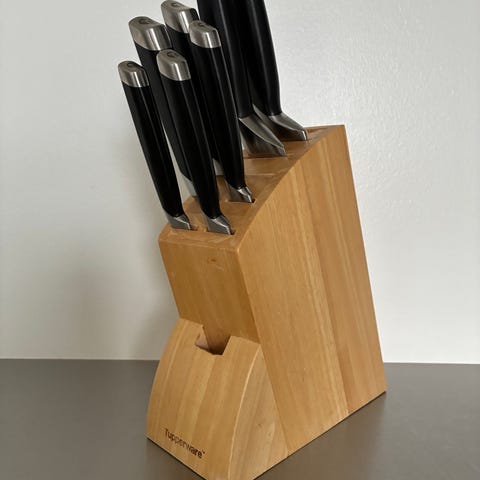 Knive, Tupperware, Kokkekniv katalogpris 479 kr , 1 stk Universal kniv Katalogpris pr stk 299 kr Nye kan købes enkelt vis. Der er kun 1 stk Universal kniv.
