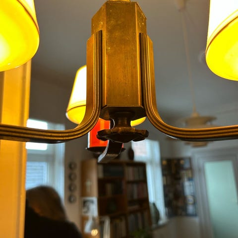 I flot og velholdt stand. Komplet sæt med baldakin, wirer, fatning og pære.