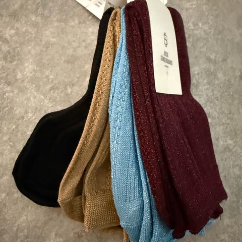 Strømperne til venstre har striber og en smule glimmer.