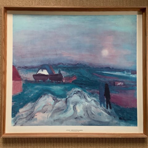 Tryk, Jens Søndergaard, motiv: Klitlandskab 1956, b: 68 h: 62, Jens Søndergaard tryk i guldramme