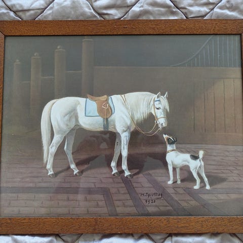Akrylmaleri, S. Lembeck, motiv: Dyr, stil: Realisme, b: 45 h: 39,5, Målene er inklusive rammen.