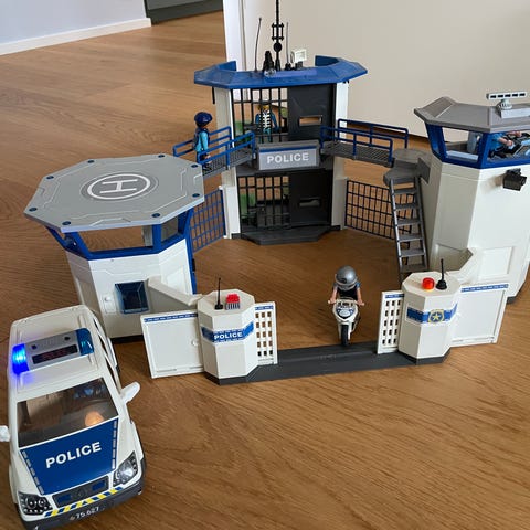 Spær Playmobil røvere og tyve ind i fængslet, og og send betjente til og fra den flotte Playmobil politistation inkl. 4 figurer og masser af tilbehør.