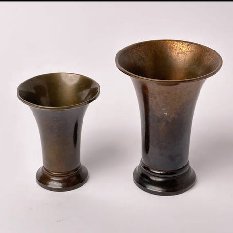 ANTIKKE Art Deco Bronze bægere, Et sæt antikke bægere i bronze. Ligner Just Andersen men er lavet af HF ILDFAST BRONCE. Art Deco stil. Patineret, let iret og charmerende.