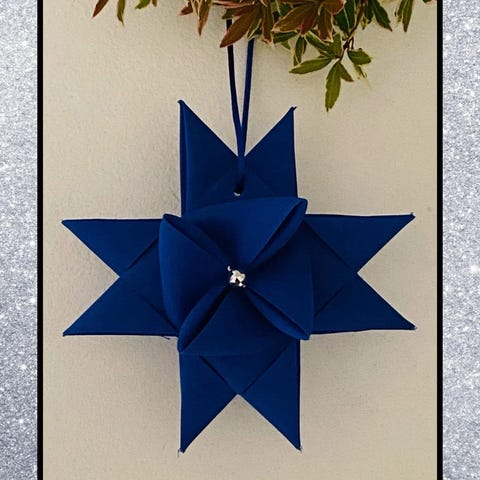 Stjernerne måler 13 cm i diameter og koster kr. 25,00 pr. stk. og jeg har 3 stk. tofarvede lysegrå stjerner og 1 stk. mørkegrå stjerne tilbage