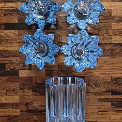 Glas, Symfoni af blå stager, Retro, vintage, Smuk symfoni af blå lysestager.
