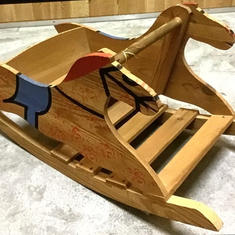 Retro gyngehest, Rød træ gyngehest, Brugt af barnebarn 3 - 4 år, afhentning I Bagsværd mod a conto beløb