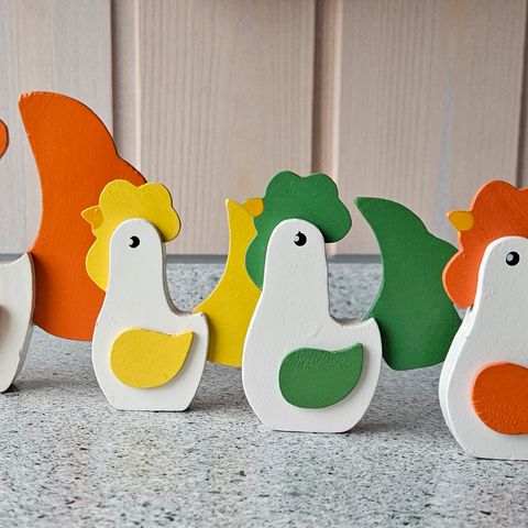Svenske træfigurer, Vintage / Retro, To fine høns (1 hane og 1 høne) til pynt. Sælges for 50 kr samlet.